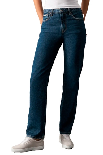 Calça Jeans Clavin Klein Jeans 5 PCKT Straight Feminina Marinho