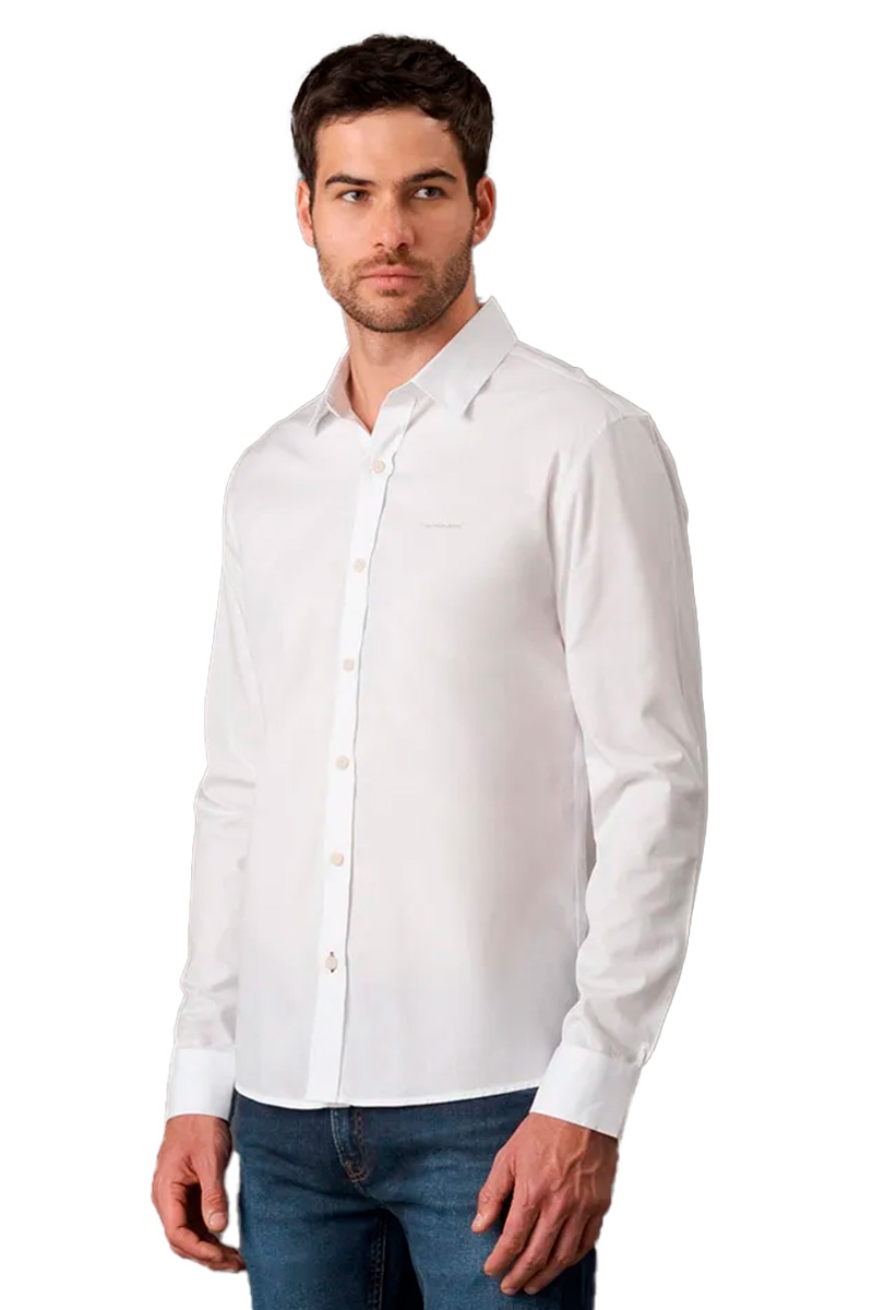 Camisa Calvin Klein Lisa Básica Logo Peito Masculina Branco
