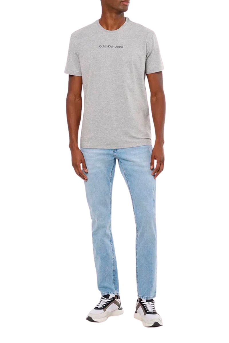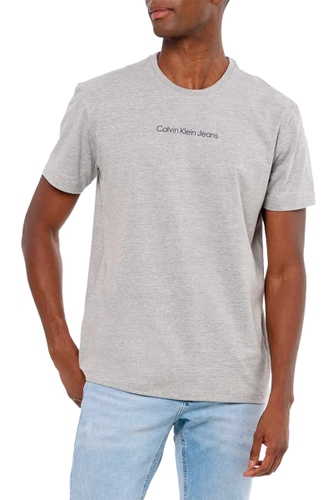 Camiseta Calvin Klein Jeans Básico Logo Centralizado Masculina Cinza Mescla