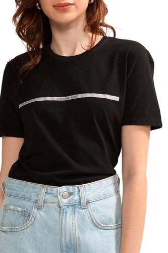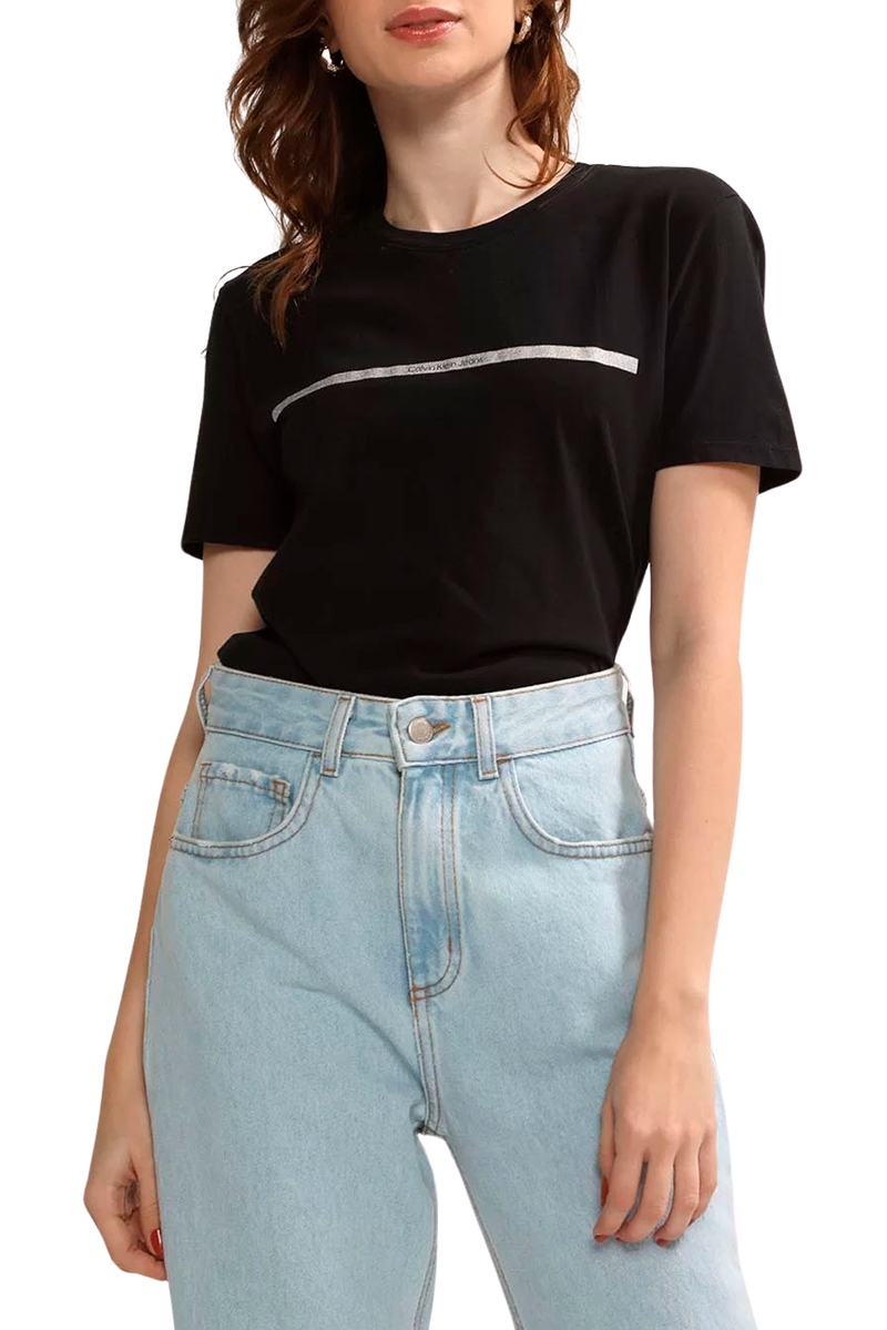 Camiseta Calvin Klein Jeans Palito Horizontal Feminina Preto