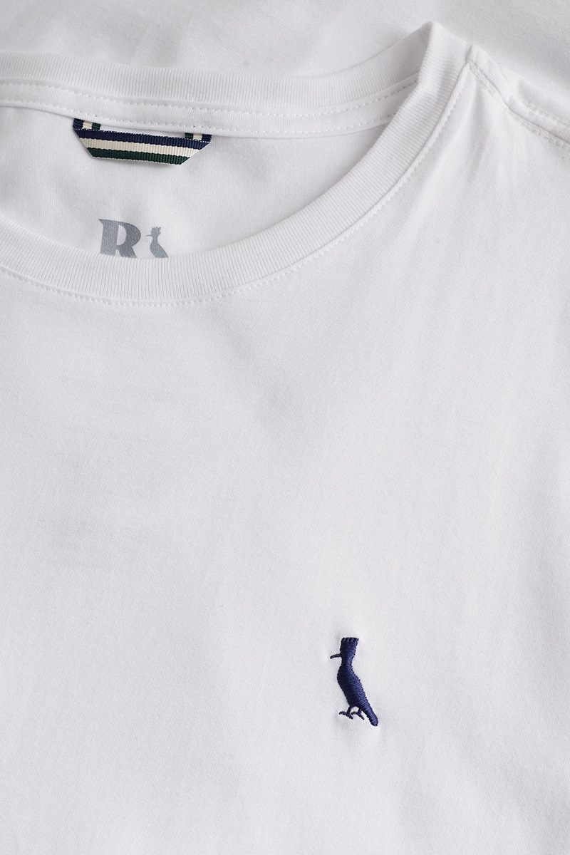 A camiseta careca Reserva é confeccionada em malha de algodão. A peça possui gola careca com acabamento canelado, mangas curtas, logo da marca bordado na parte frontal, shape e solto.