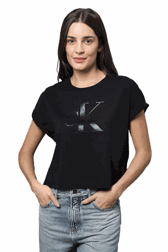 Camiseta Calvin Klein Jeans Logo Gel Fosco Feminina Preto
