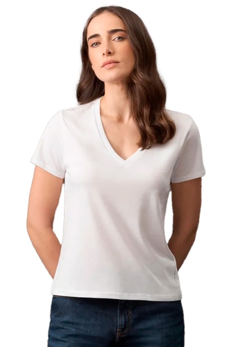 Camiseta Calvin Klein Jeans Essentials Gola V Feminina Branco