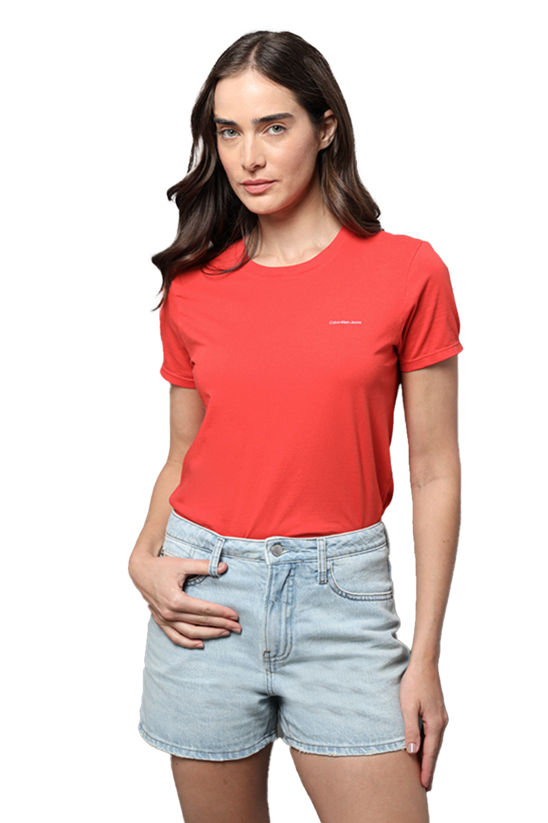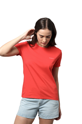 Camiseta Calvin Klein Jeans Micrologo Peito Feminina Vermelho