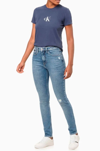 Camiseta Calvin Klein Jeans Reissue Retangulo Feminina Marinho