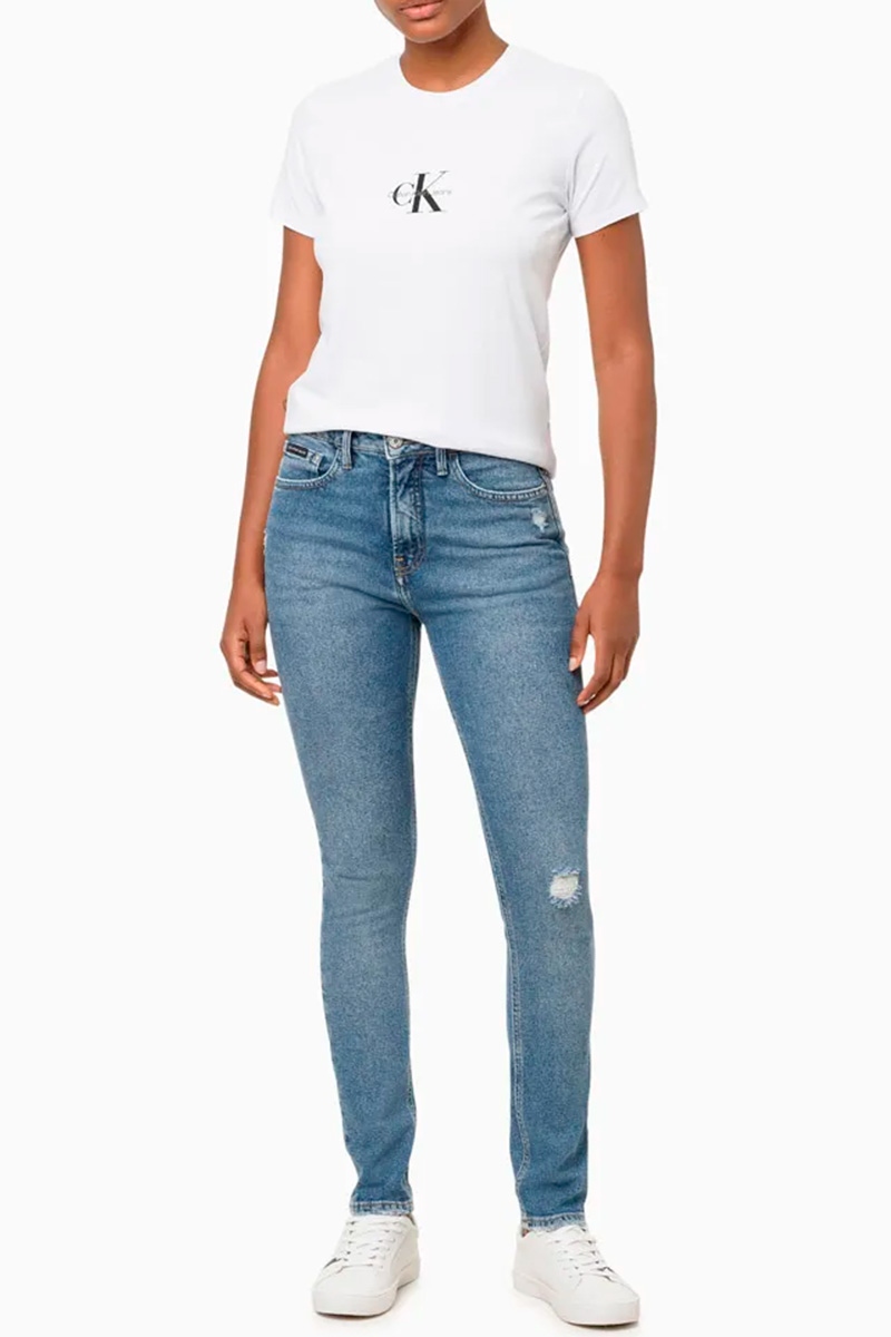 Camiseta Calvin Klein Jeans Reissue Retangulo Feminina Branco