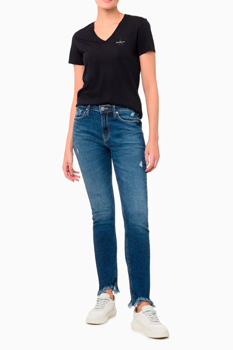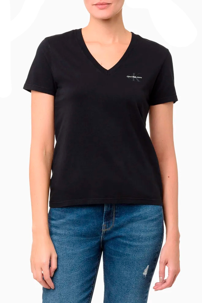 Camiseta Calvin Klein Jeans Decote V Logo Feminina Preto