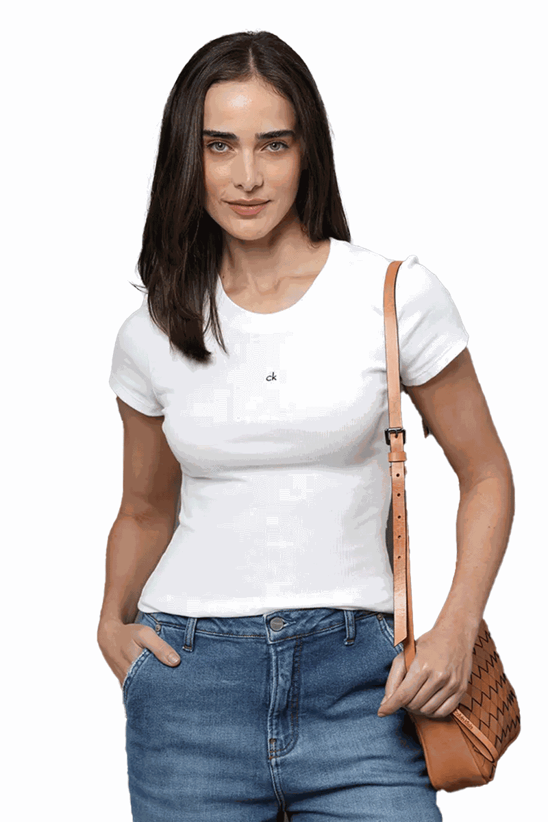 Camiseta Calvin Klein Logo Bordado Feminina Branco