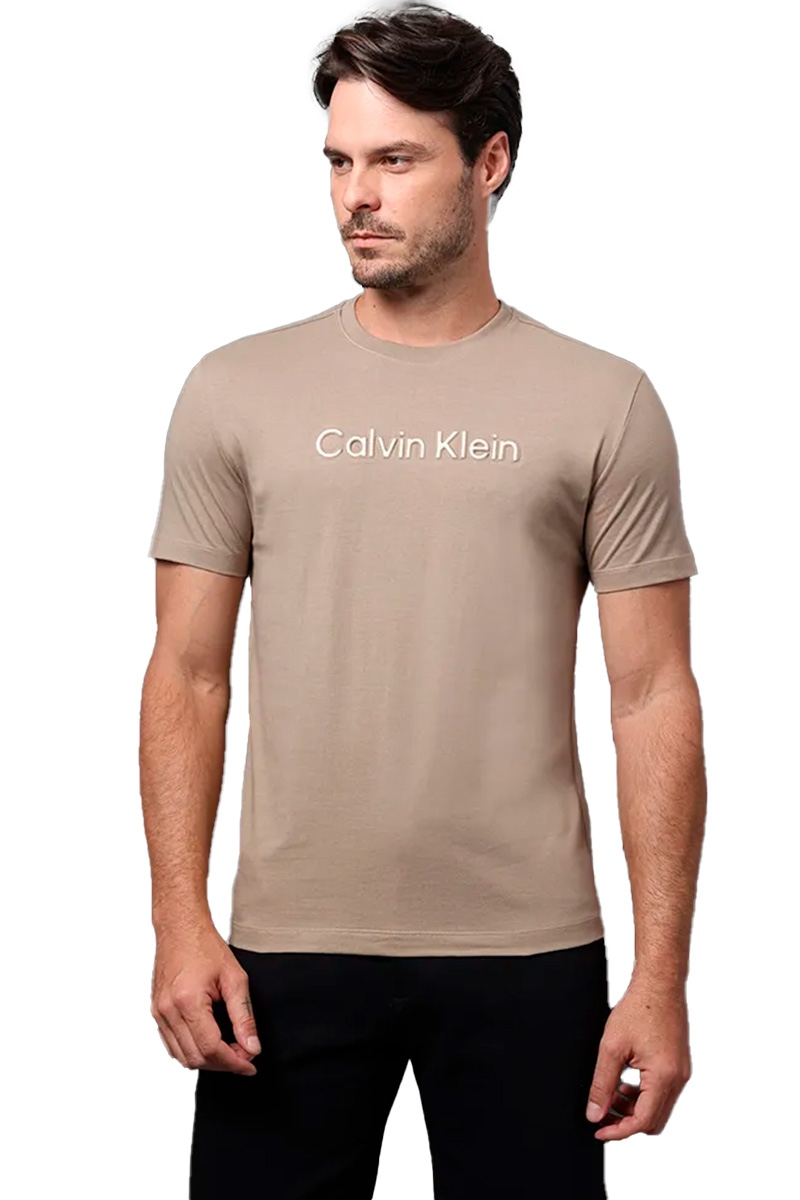 Camiseta Calvin Klein Embossed Color Masculina Caqui Médio