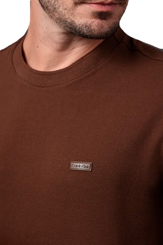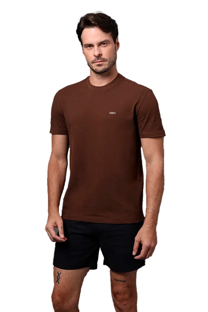 Camiseta Calvin Klein Piquet Patch Borracha Masculina Marrom