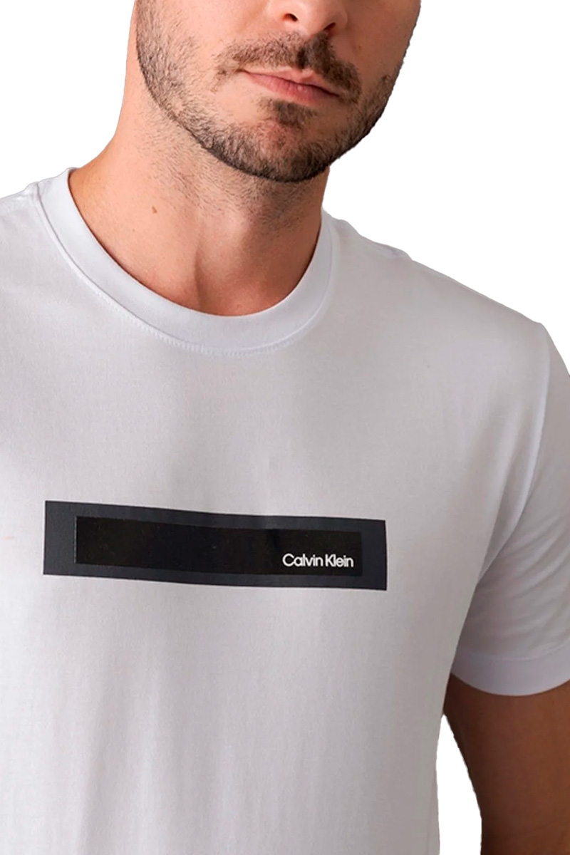 Camiseta Calvin Klein Stripe Logo Gel Masculina Off White