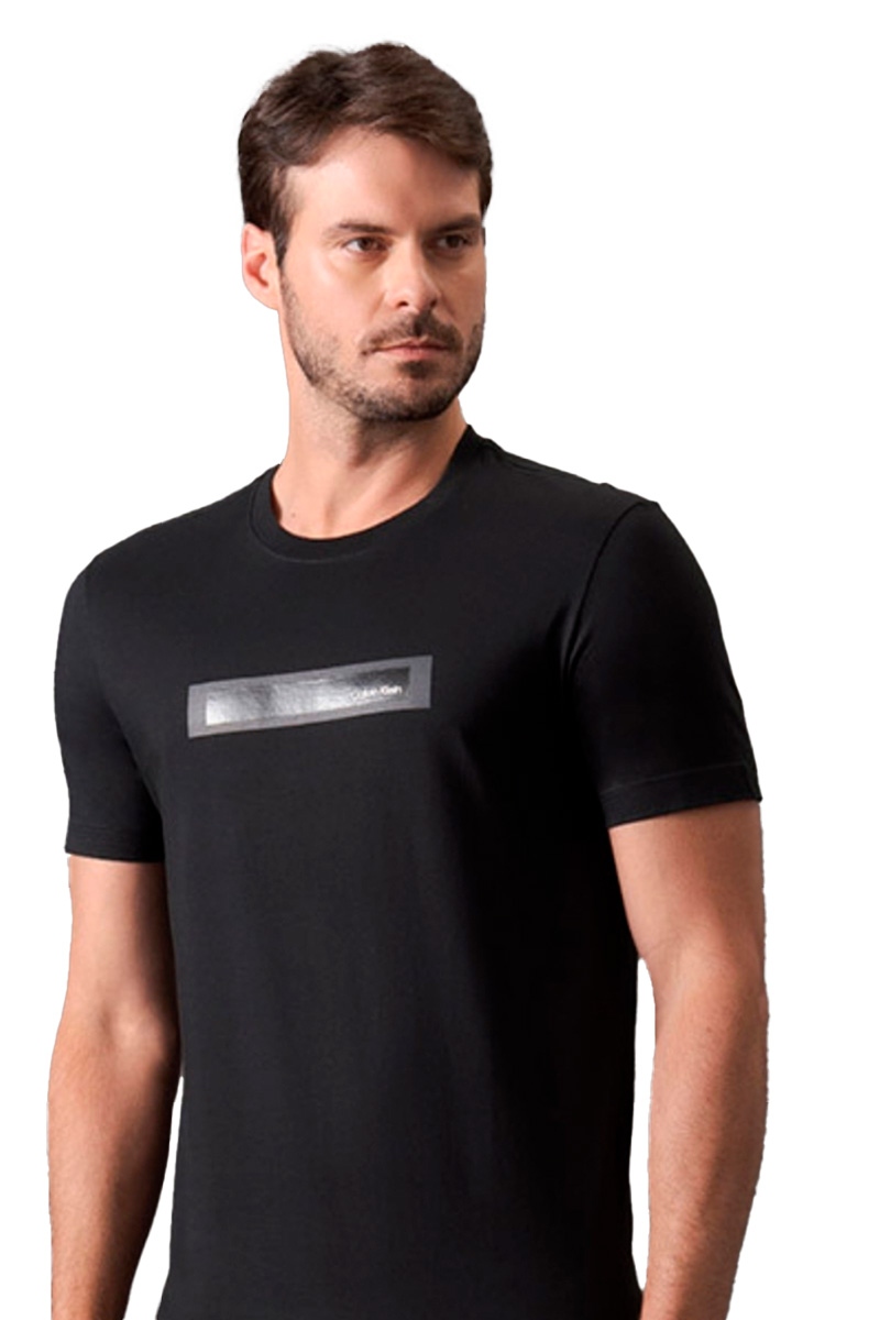 Camiseta Calvin Klein Stripe Logo Gel Masculina Preto