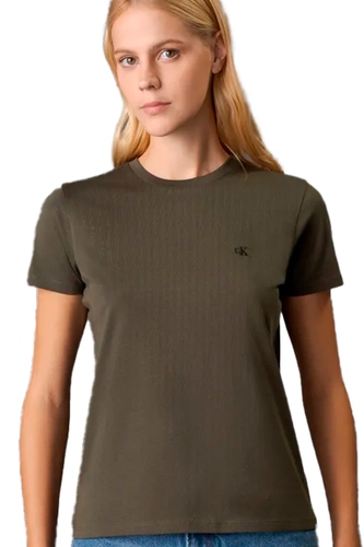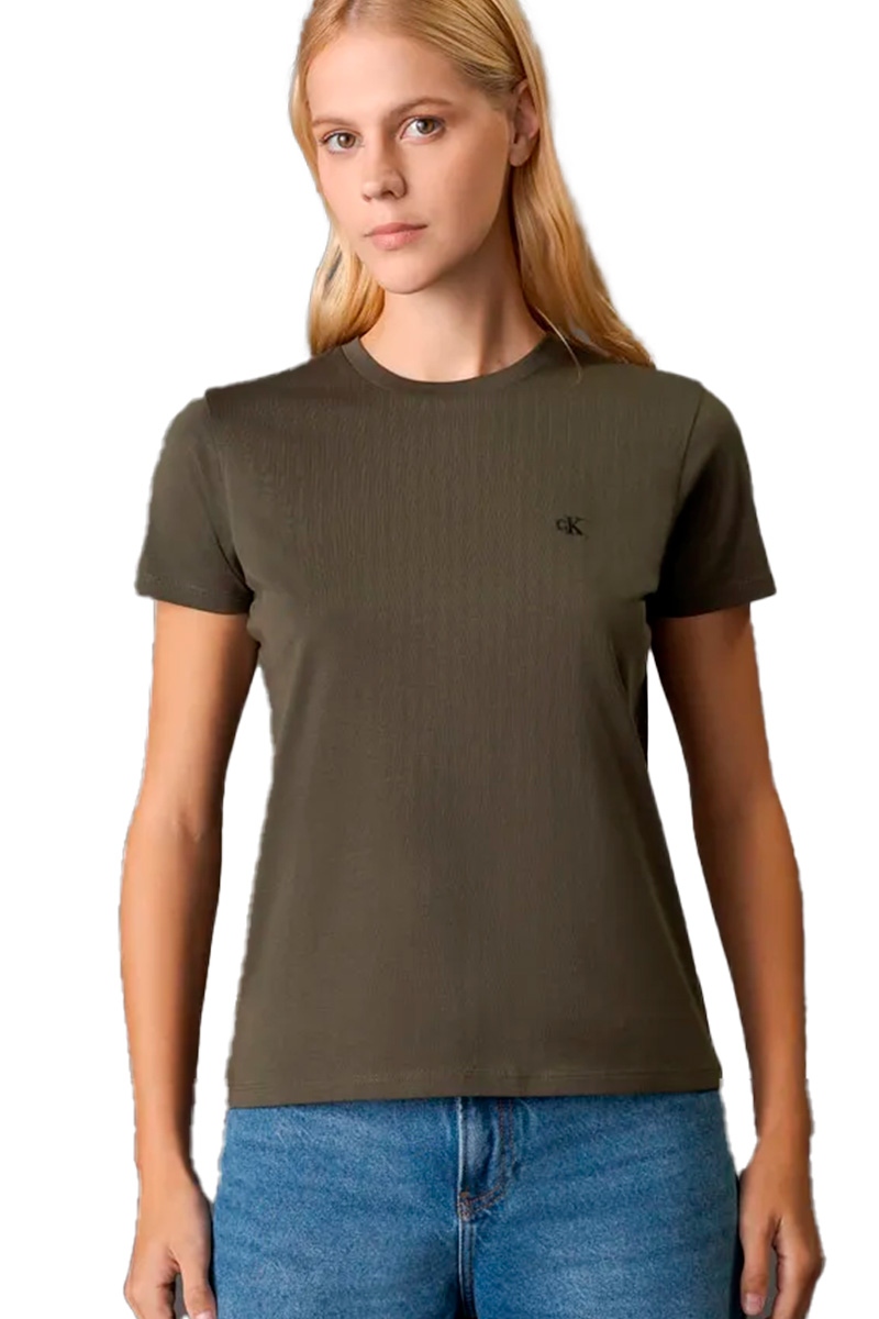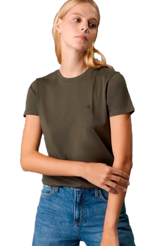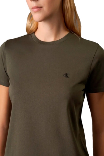 Camiseta Regular Logo Bordado Calvin Klein Jeans Feminina Verde Militar