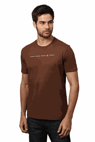 Camiseta Calvin Klein Jeans Logo Masculina Marrom