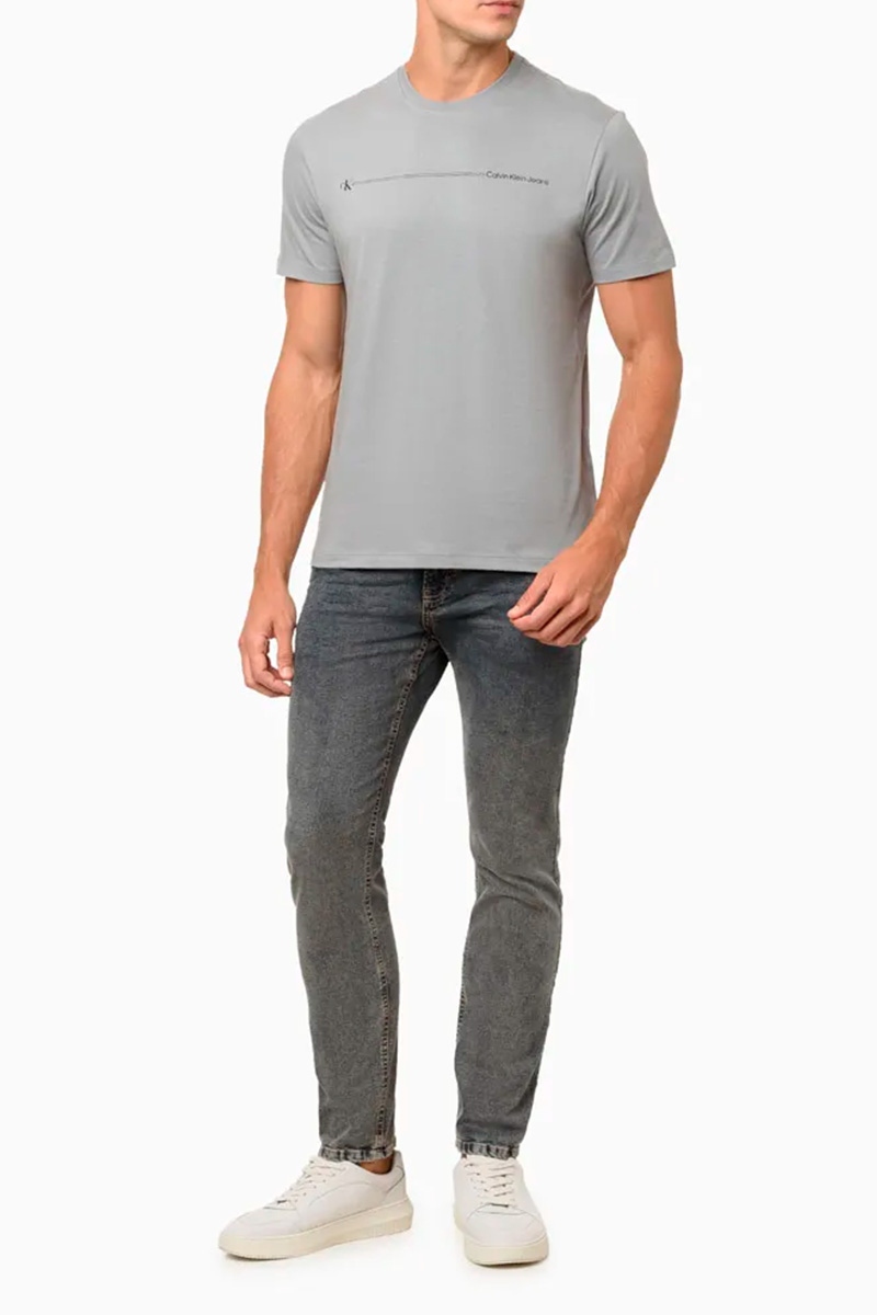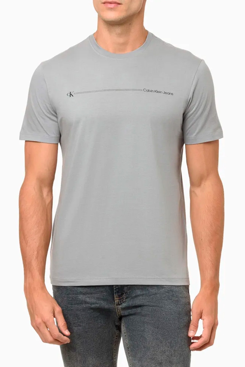 Camiseta Calvin Klein Jeans Logo Palito Naturals Masculina Chumbo