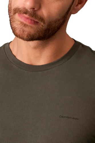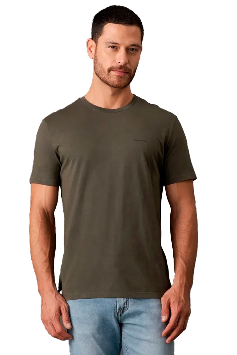 Camiseta Calvin Klein Jeans Básica Logo Minimalista Masculina Verde Militar