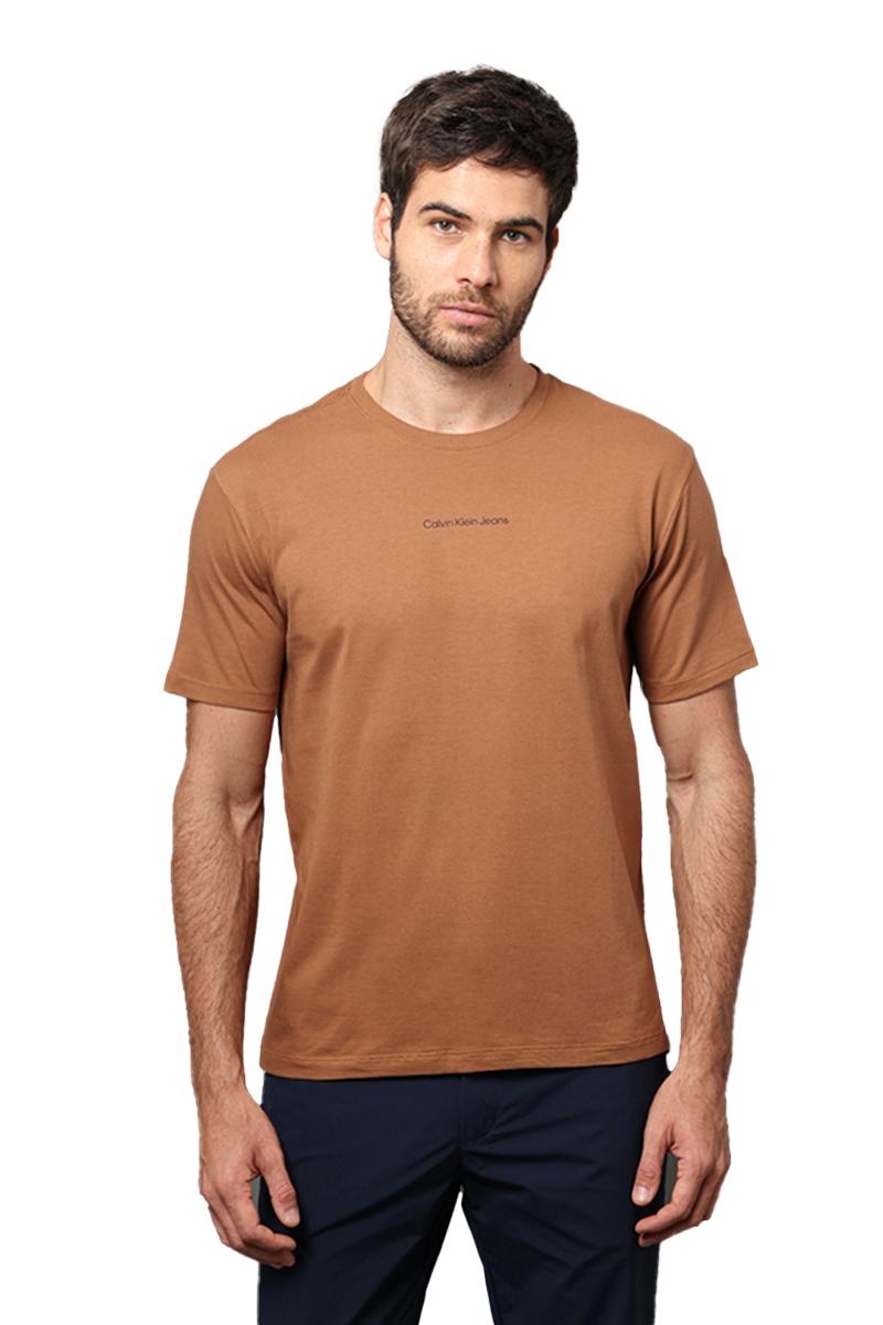 Camiseta Calvin Klein Jeans Logo Centralizado Masculina Caramelo