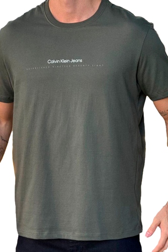 Camiseta Calvin Klein Jeans Logo Minimal Masculina Verde Militar
