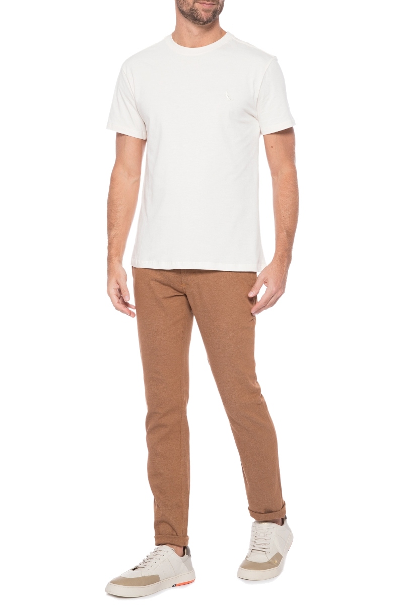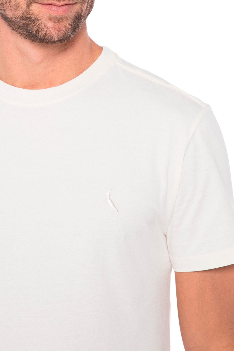 A camiseta careca Reserva é confeccionada em malha de algodão. A peça possui gola careca com acabamento canelado, mangas curtas, logo da marca bordado na parte frontal, shape e solto.