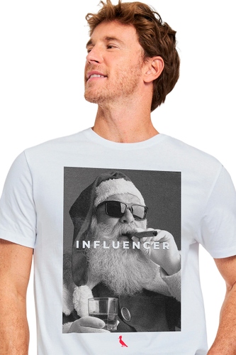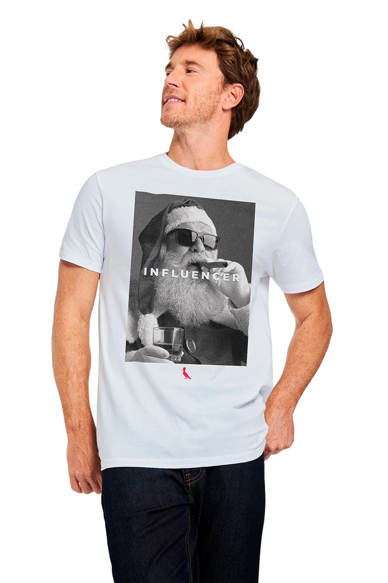 Camiseta Reserva Estampada Influencer Papai Noel Masculina Branco