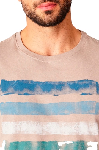 Camiseta Reserva Slim Estampada New Stripes Bege