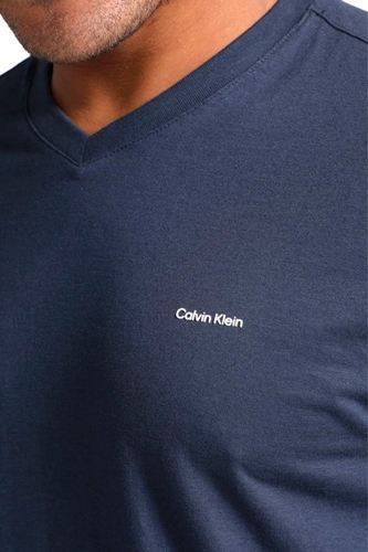Camiseta Calvin Klein Jeans Slim Flame Gola V Masculina Marinho