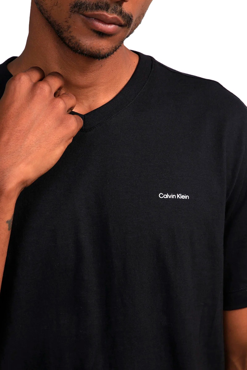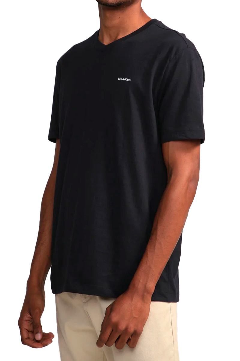 Camiseta Calvin Klein Jeans Slim Flame Gola V Masculina Preto