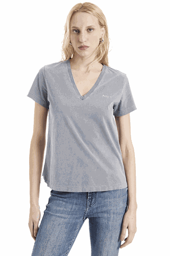 Camiseta Ellus Classic Slim Decote V Feminina Cinza