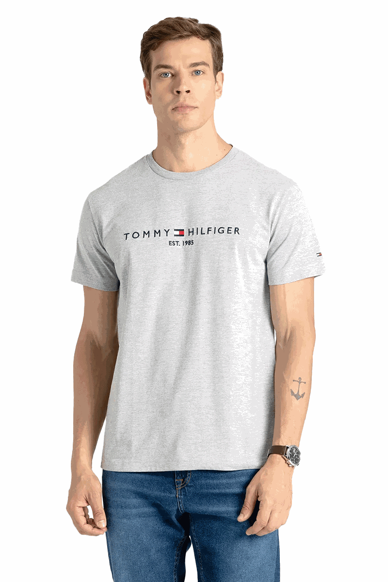 Camiseta Tommy Hilfiger Logo Masculina Cinza Mescla