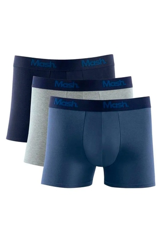 Kit 3 Cuecas Boxer Mash Masculina Azul/Azul/Cinza