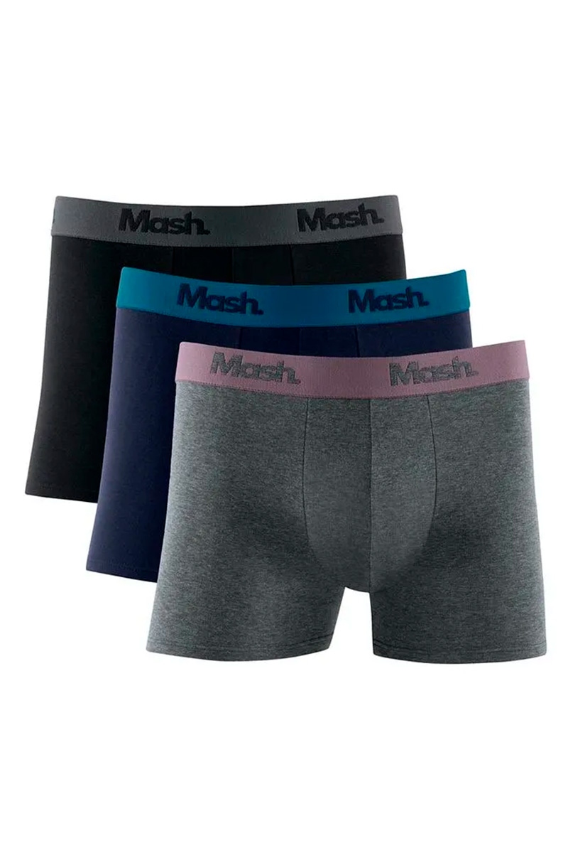 Kit 3 Cuecas Boxer Mash Masculina Preto/Cinza/Azul