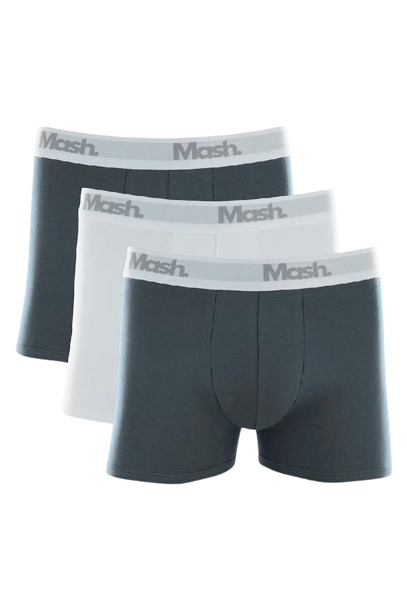 Kit 3 Cuecas Boxer Mash Masculina Branco e Cinza