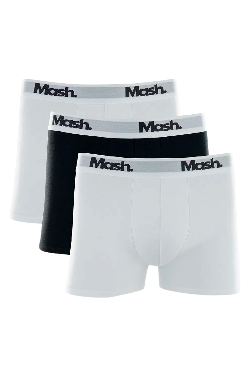Kit 3 Cuecas Boxer Mash Masculina Preto / Branco