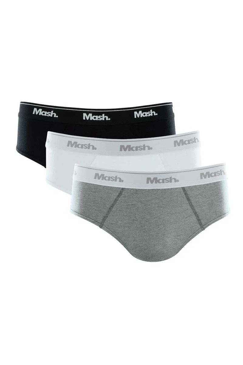 Kit 3 Cuecas Mash Slip Masculina Branco/Preto/Mescla