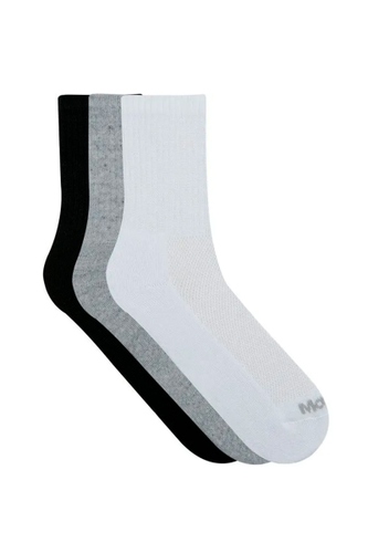 Kit 3 Pares Meia Esportiva Cano Médio Branco/Preto/Mescla