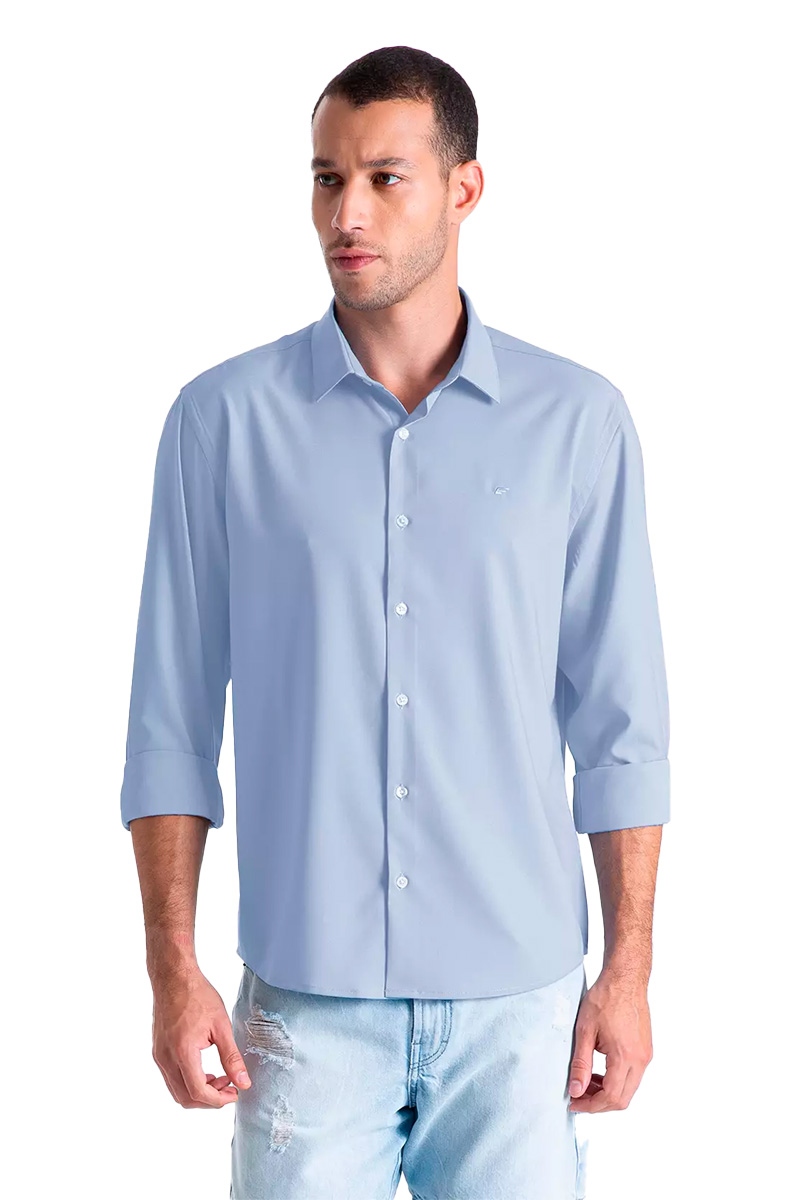Camisa Ellus Linen Blend Classic Irish ML Masculina Azul Claro