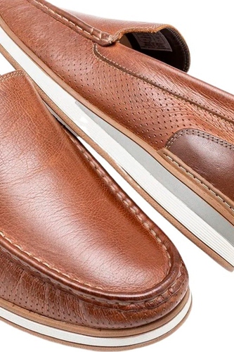 Linha Denim: liberdade para transitar em diferentes situações e estar bem vestido. Contemporâneo, despojado, confortável e perfeito para o uso no dia a dia. O Mocassim Denim Flow é confeccionado em couro.