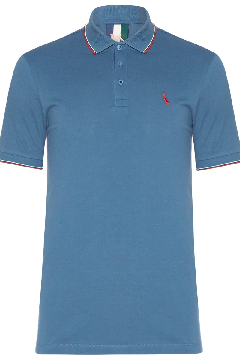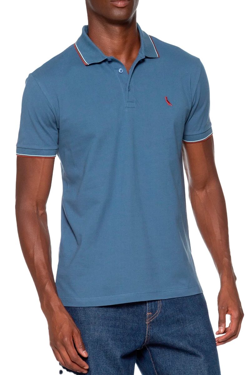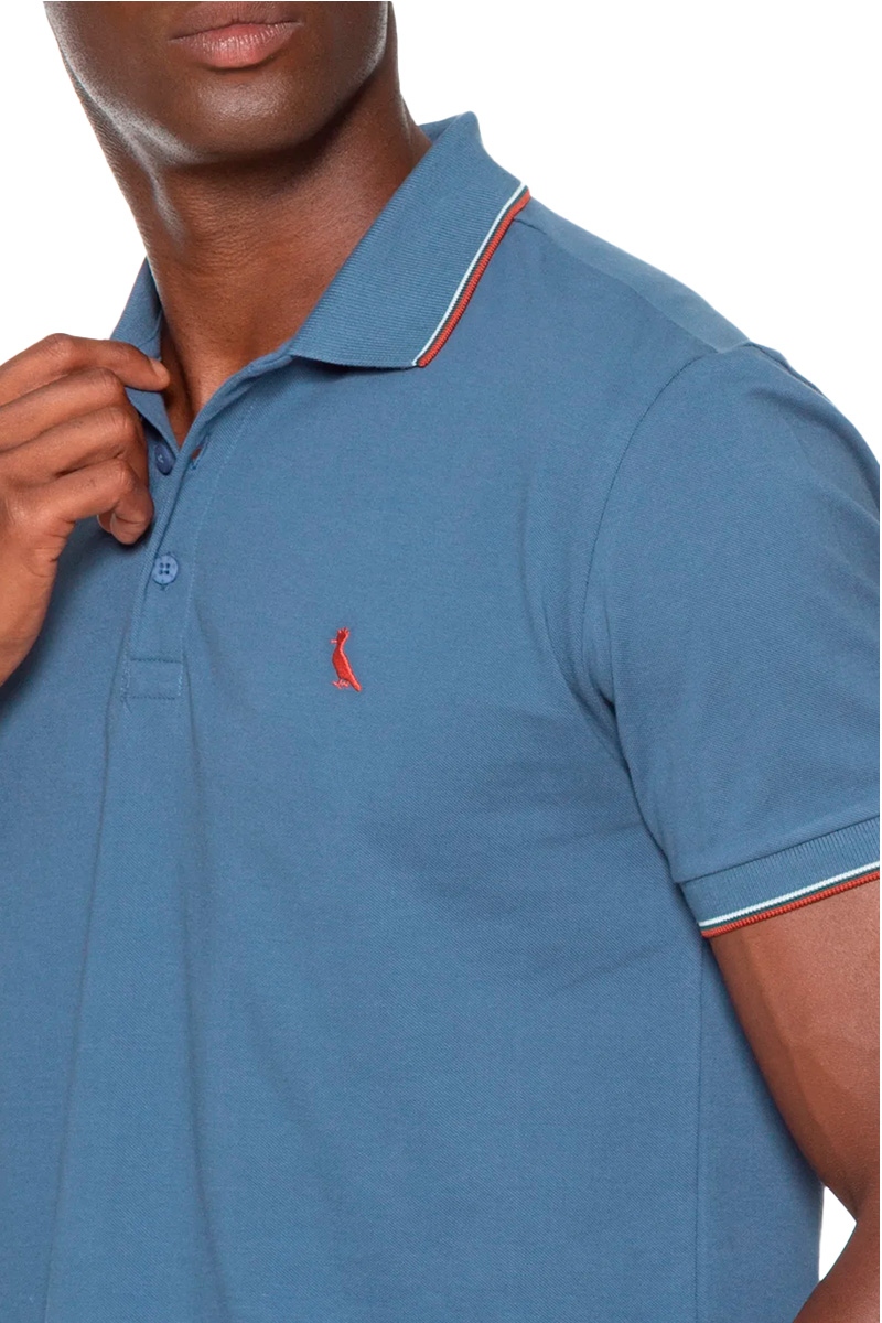 Polo Reserva Enxuto Novo Friso Masculina Azul Jeans