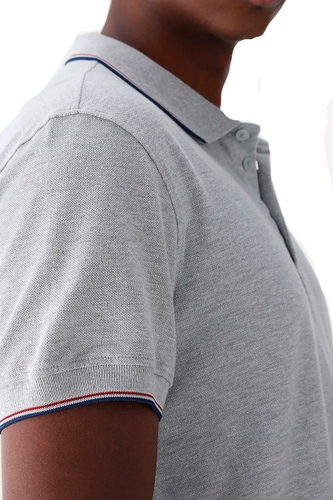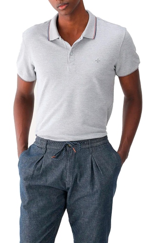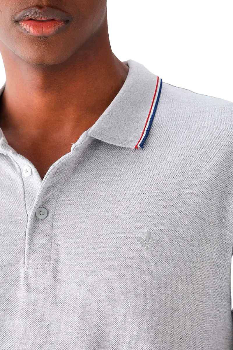 Polo Dudalina Piquet Gola Frisos Degrade Masculina Cinza Mescla