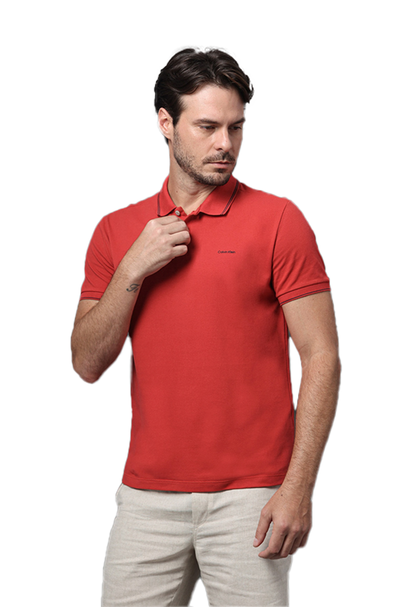 Polo Calvin Klein Regular Bassica Friso Masculina Vermelho