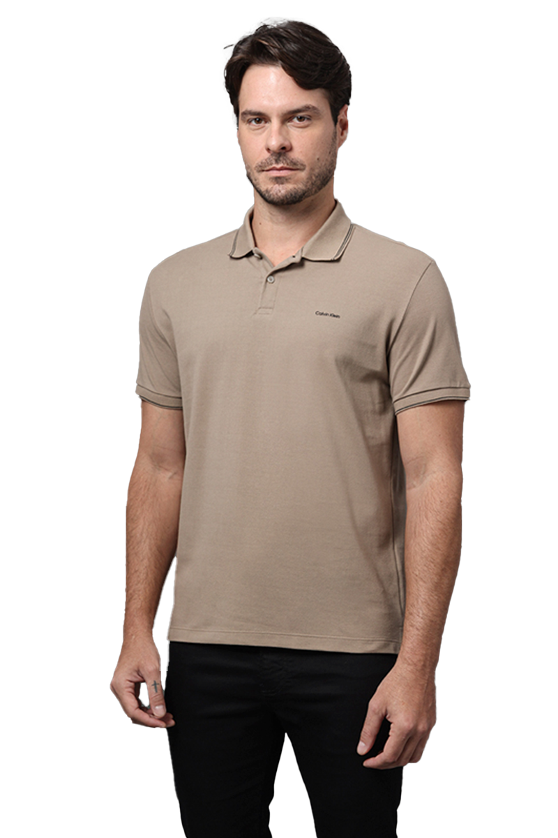 Polo Calvin Klein Regular Bassica Friso Masculina Caqui