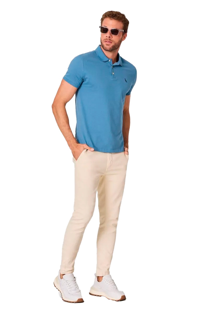 Polo Piquet Reserva Clássica Masculina Azul Jeans