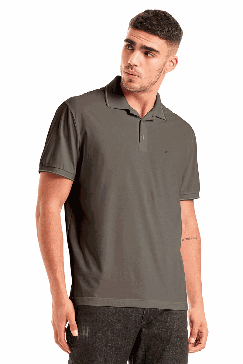 Polo Ellus Piquet Easa Friso Classic Masculina Marrom Com Friso Verde
