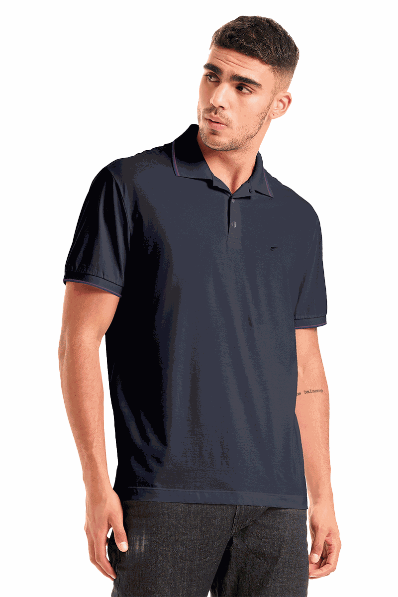 Polo Ellus Piquet Easa Friso Classic Masculina Azul Escuro