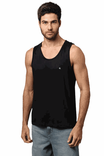 Regata Calvin Klein Jeans Logo Ck Masculina Preto