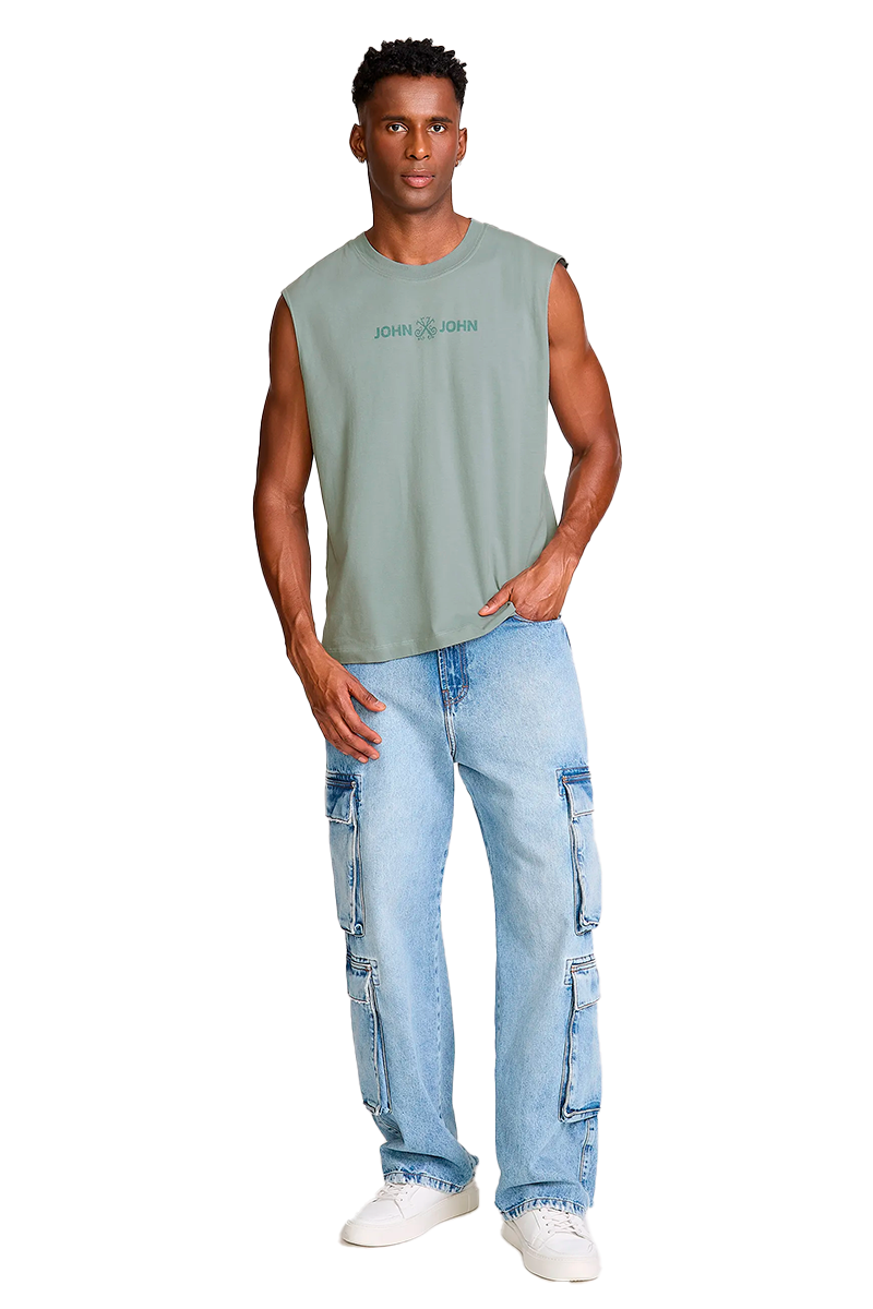 Regata John John Reta Flat Masculina Cinza Claro