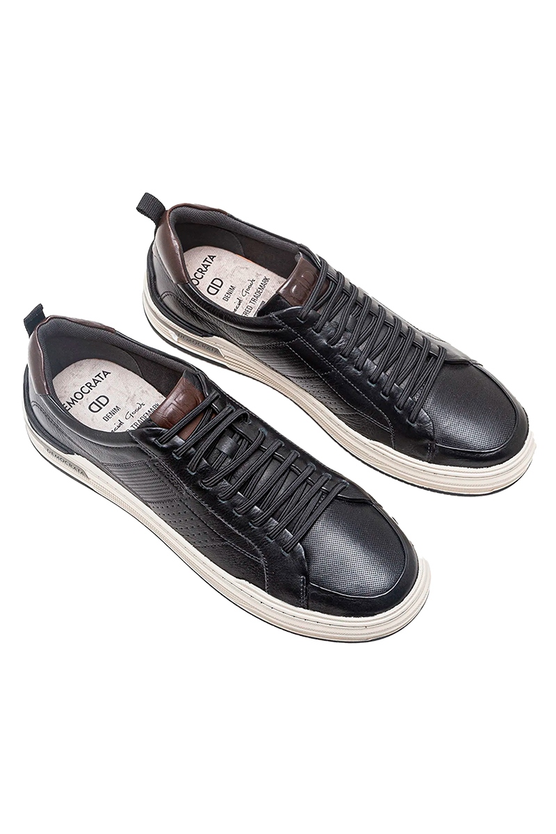 O Sapatênis Denim Clash é confeccionado em couro na cor Smoke com recortes nas laterais. Possui fechamento em cadarço de elástico, facilitando o calce, logo da marca na língua e detalhe de couro marrom no calcanhar com puxador de tecido. Sua sola é feita de borracha na cor bege com detalhe preto no calcanhar e blaqueada na lateral, além de contar com uma palmilha macia de p.u com forro de tecido e bico arredondado.
