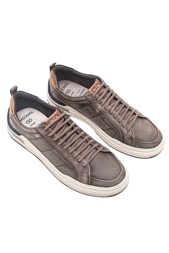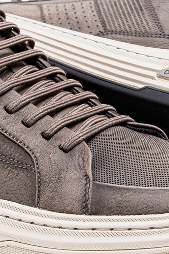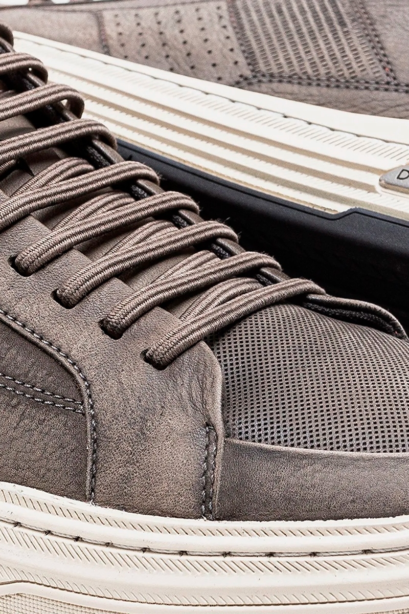 O Sapatênis Denim Clash é confeccionado em couro na cor Smoke com recortes nas laterais. Possui fechamento em cadarço de elástico, facilitando o calce, logo da marca na língua e detalhe de couro marrom no calcanhar com puxador de tecido. Sua sola é feita de borracha na cor bege com detalhe preto no calcanhar e blaqueada na lateral, além de contar com uma palmilha macia de p.u com forro de tecido e bico arredondado.