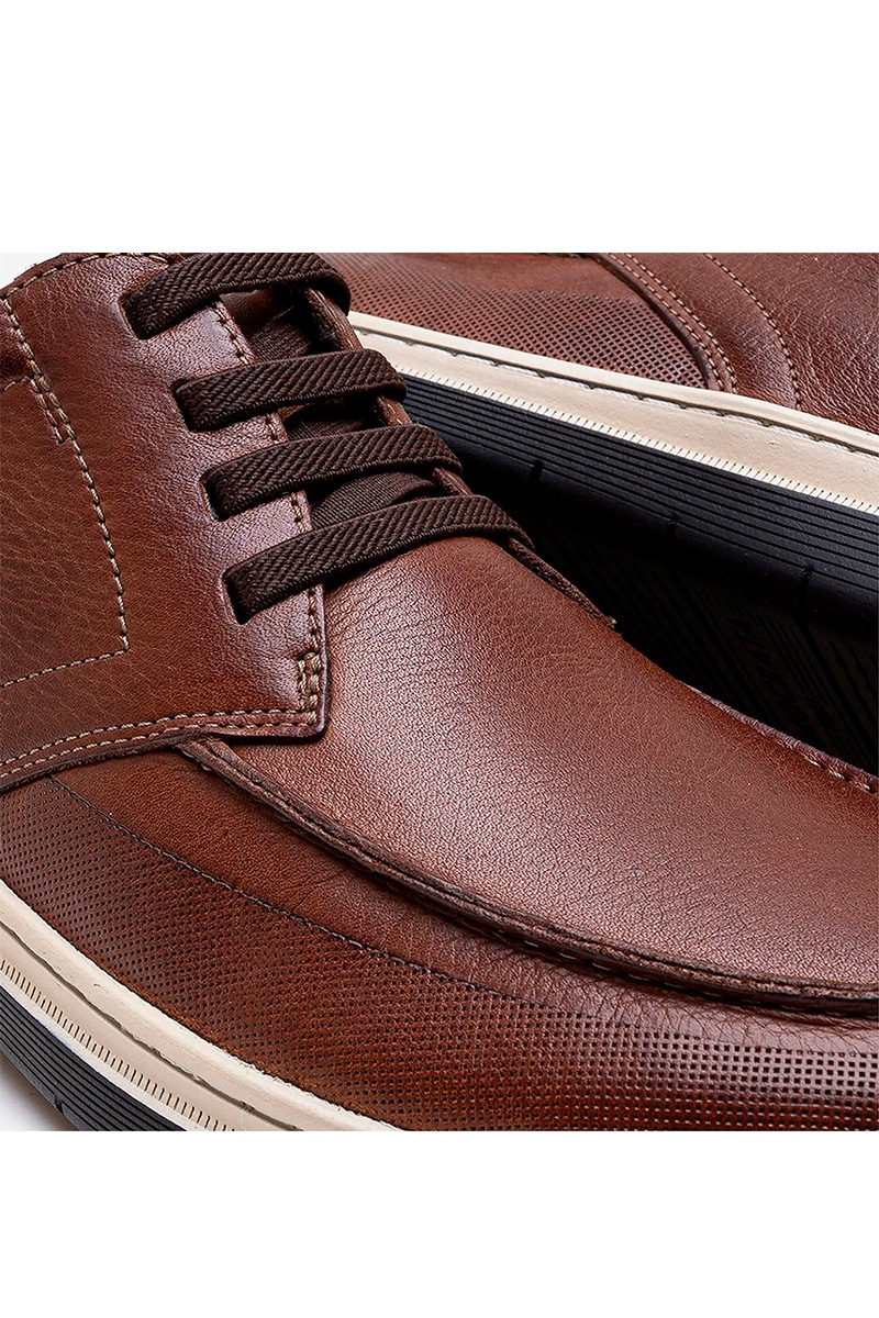 O sapato de couro Marrom Easy Leave é um produto moderno e casual. Confeccionado em couro na cor marrom, o fechamento é em cadarço de elástico, cabedal detalhado com recortes e forro de tecido. O solado é de Borracha e a palmilha é feita de P.U.
