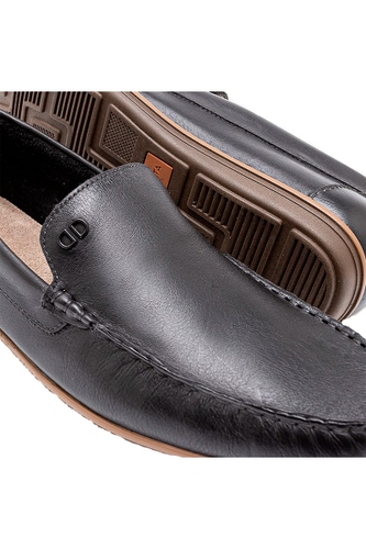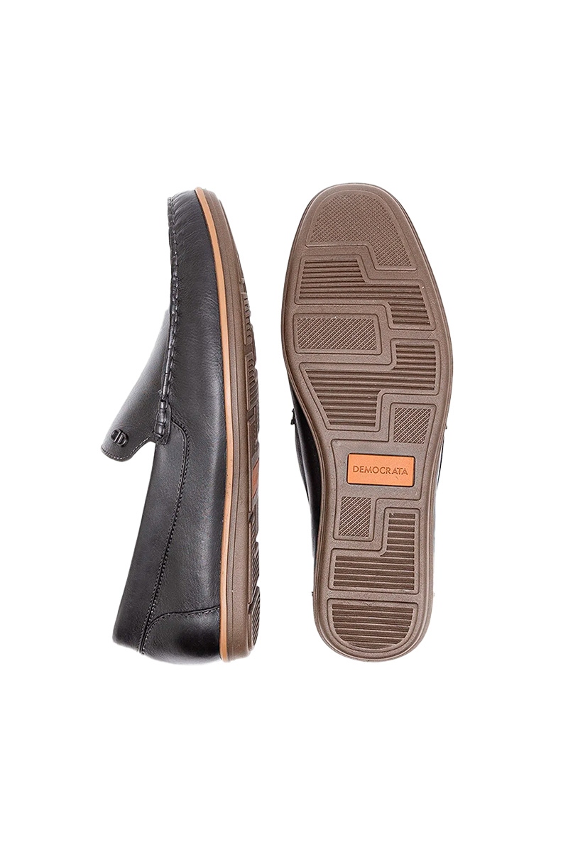 Mocassim Democrata Couro Bovino, Solado Borracha Masculino Preto